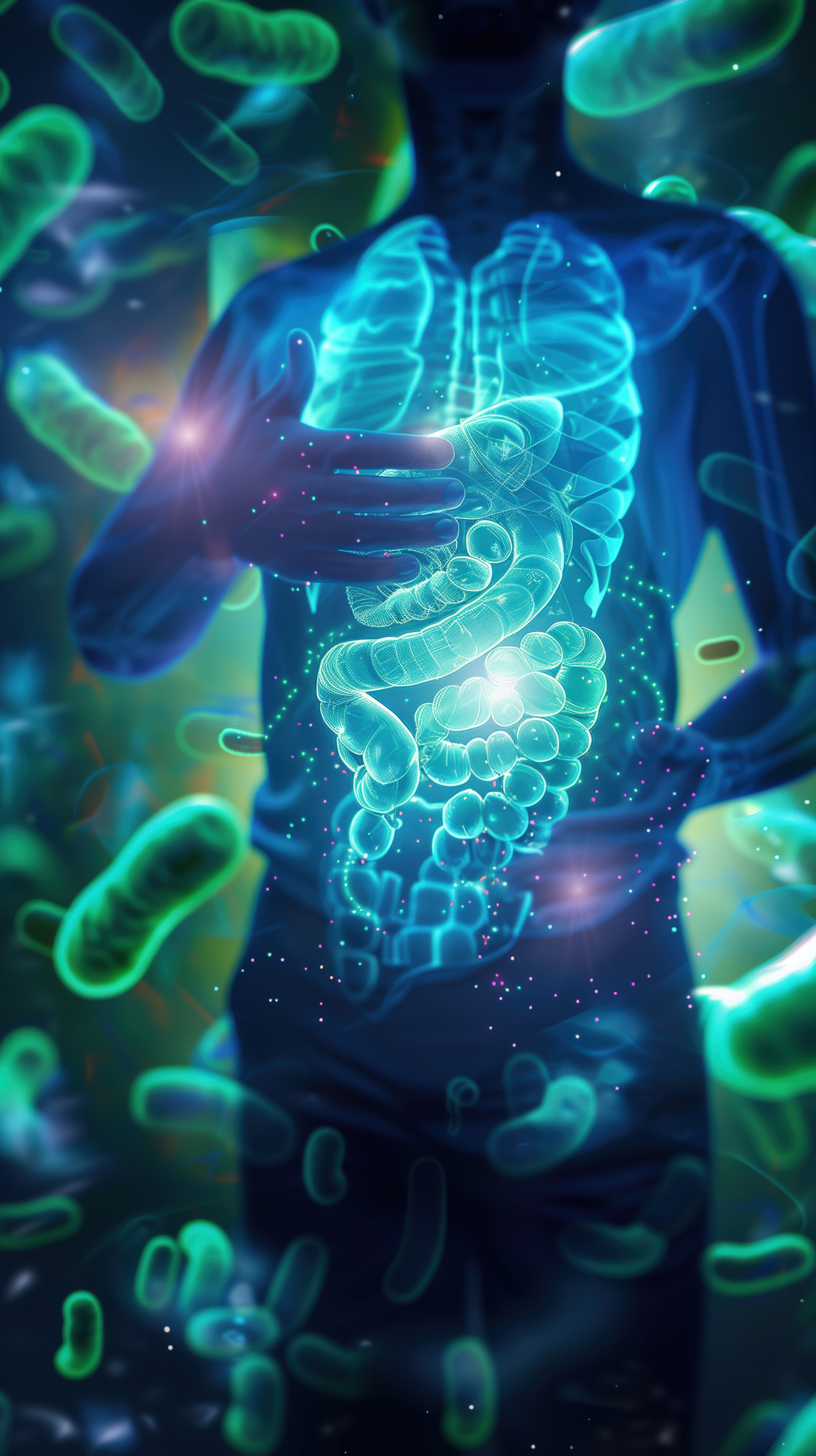 Gut Health and Probiotics for Balanced Microbiome, Hologram of Probiotics, Digestive Health Concept